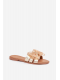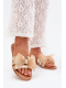 Dámské pantofle na nízkém podpatku jsou elegantní volbou pro letní dny i slavnostnější příležitosti. Výrazná tylová mašle dodává obuvi jemný a ženský vzhled, zatímco zlaté provedení působí luxusně a stylově. Nízký podpatek zajišťuje pohodlí při chůzi a dělá z pantoflí praktický kousek pro delší nošení.