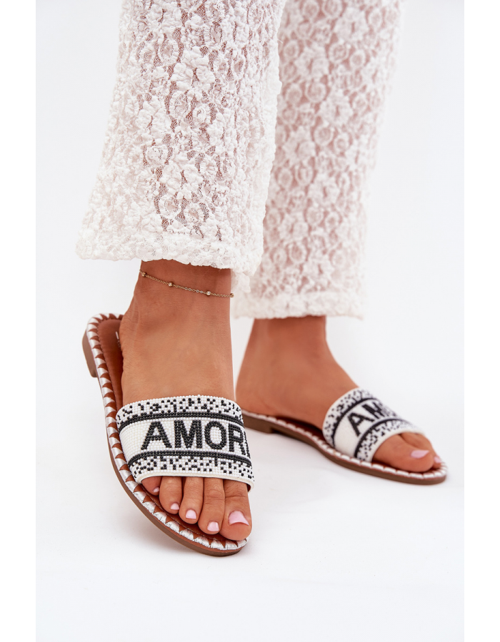 Bílé pantofle se zdobením krásně doplní pastelové i neutrální outfity a dodají jim jemný, elegantní akcent.