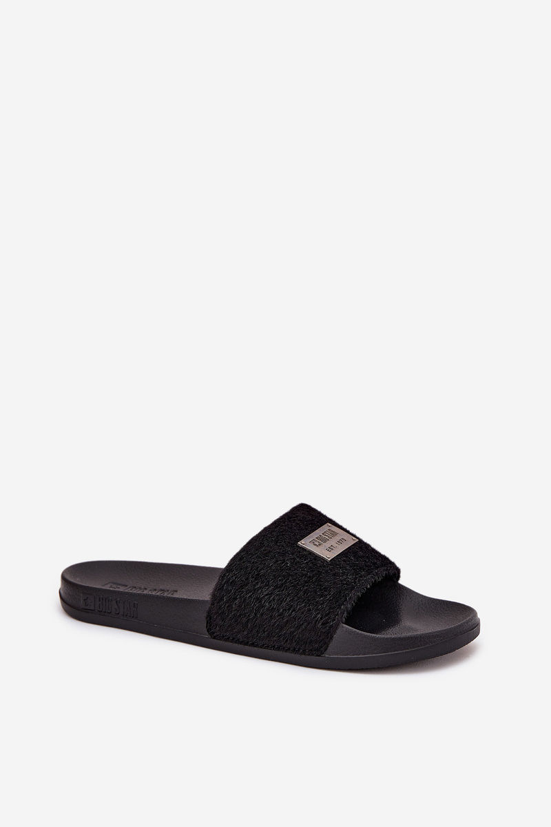 Stylové a pohodlné dámské pantofle Big Star kombinují moderní design s hřejivým kožíškem a lehkou pěnovou podešví. Černé provedení dodává univerzální a elegantní vzhled, vhodný pro domácí pohodu i volnočasové aktivity. Pantofle poskytují komfort a měkké tlumení při chůzi.