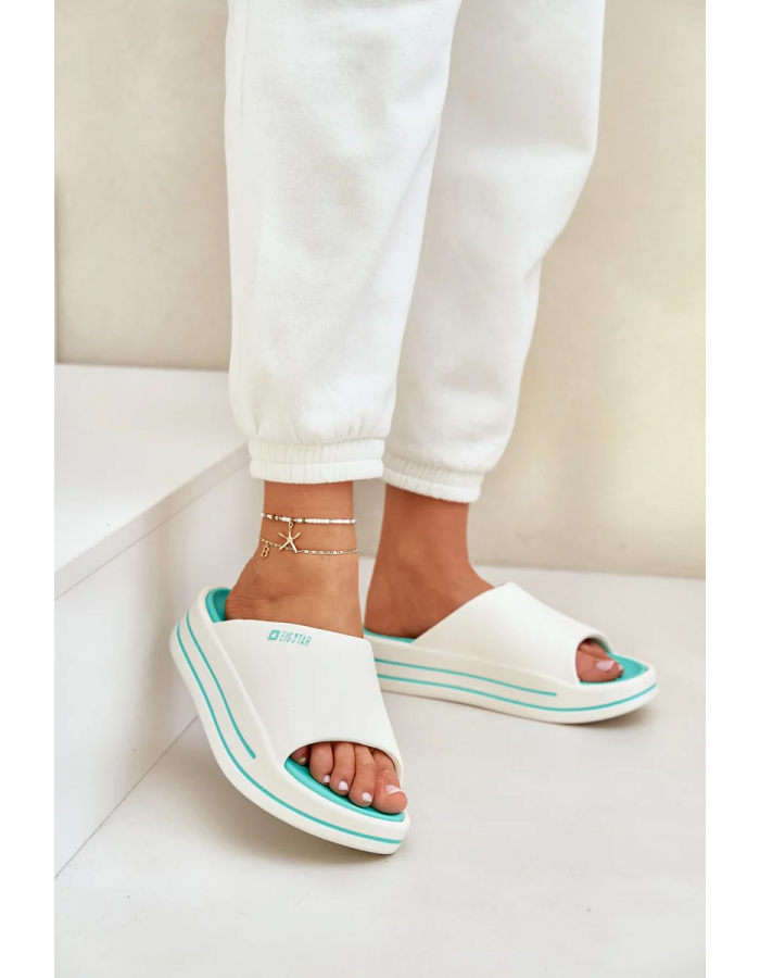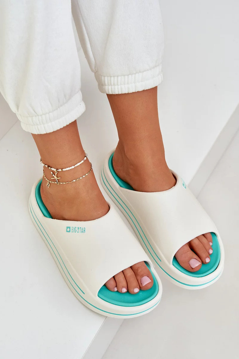 Stylové pantofle od značky Big Star v osvěžující kombinaci bílé a mátové barvy vás zaujmou nejen vzhledem, ale i pohodlím. Vyvýšená platforma dodá pár centimetrů navíc a zároveň zachová komfort při chůzi. Ideální pro letní městské procházky nebo odpočinek na dovolené. Hlavní benefity: Moderní platformová podešev Měkká, tvarovaná stélka Lehký syntetický materiál Trendy barevné provedení bílo-mátové Snadno kombinovatelné s letními outfity Tip: Noste je k šortkám, volným šatům nebo plážovým tunikám – pohodlná a svěží volba pro horké dny. Materiálové složení: Svršek: syntetický materiál Stélka: syntetický materiál Podešev: syntetický materiál