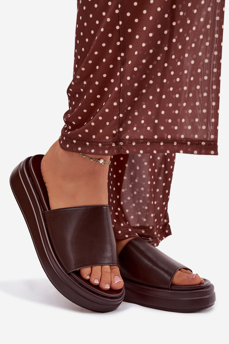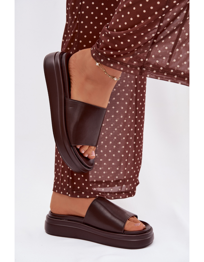 Čokoládové pantofle krásně doplní neutrální outfity – zkombinujte je s béžovými, krémovými nebo bílými kousky pro svěží a elegantní letní look.