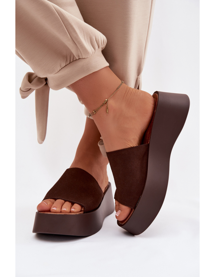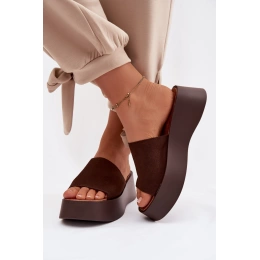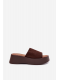 Čokoládové pantofle na platformě skvěle doplní letní šaty, sukně i kalhoty v přírodních a zemitých tónech.