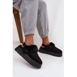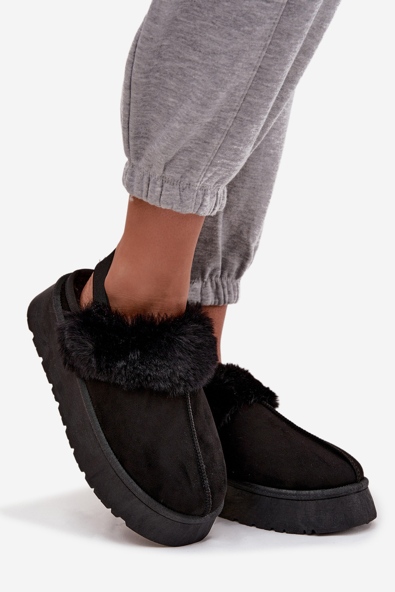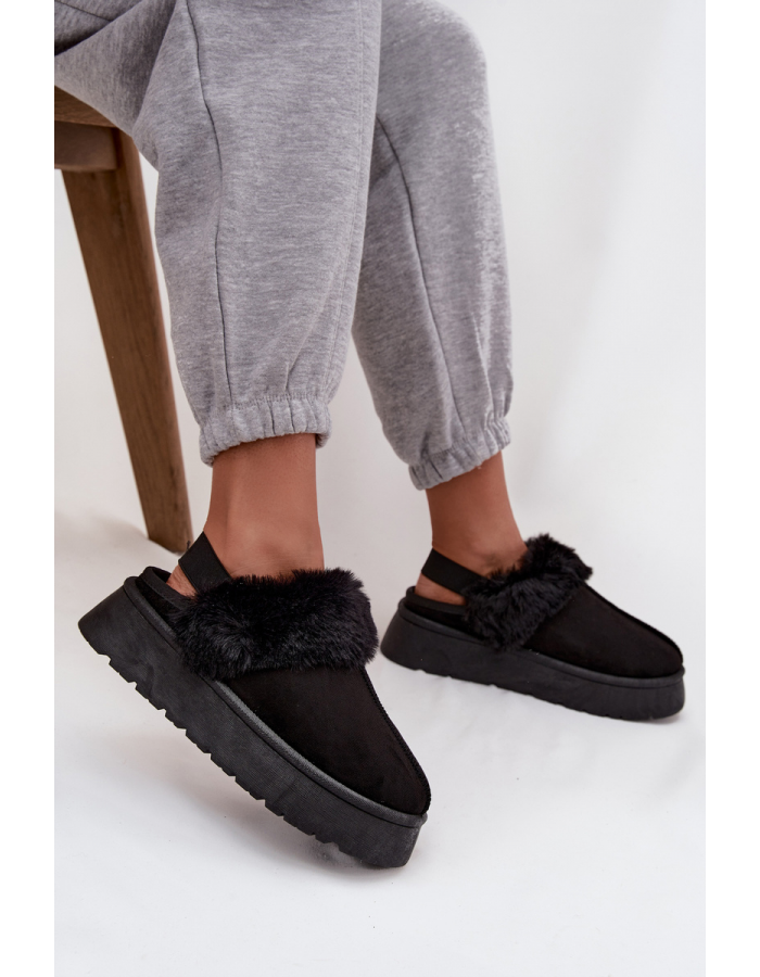 Vnitřek je zateplený měkkým kožíškem, který poskytuje teplo a příjemný pocit při nošení. Model s otevřenou patou má elastický pásek, jenž usnadňuje nazouvání a přizpůsobení obuvi.