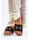 Černé pantofle se zlatými detaily krásně doplní jednoduchý outfit a dodají mu elegantní akcent.
