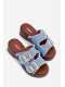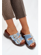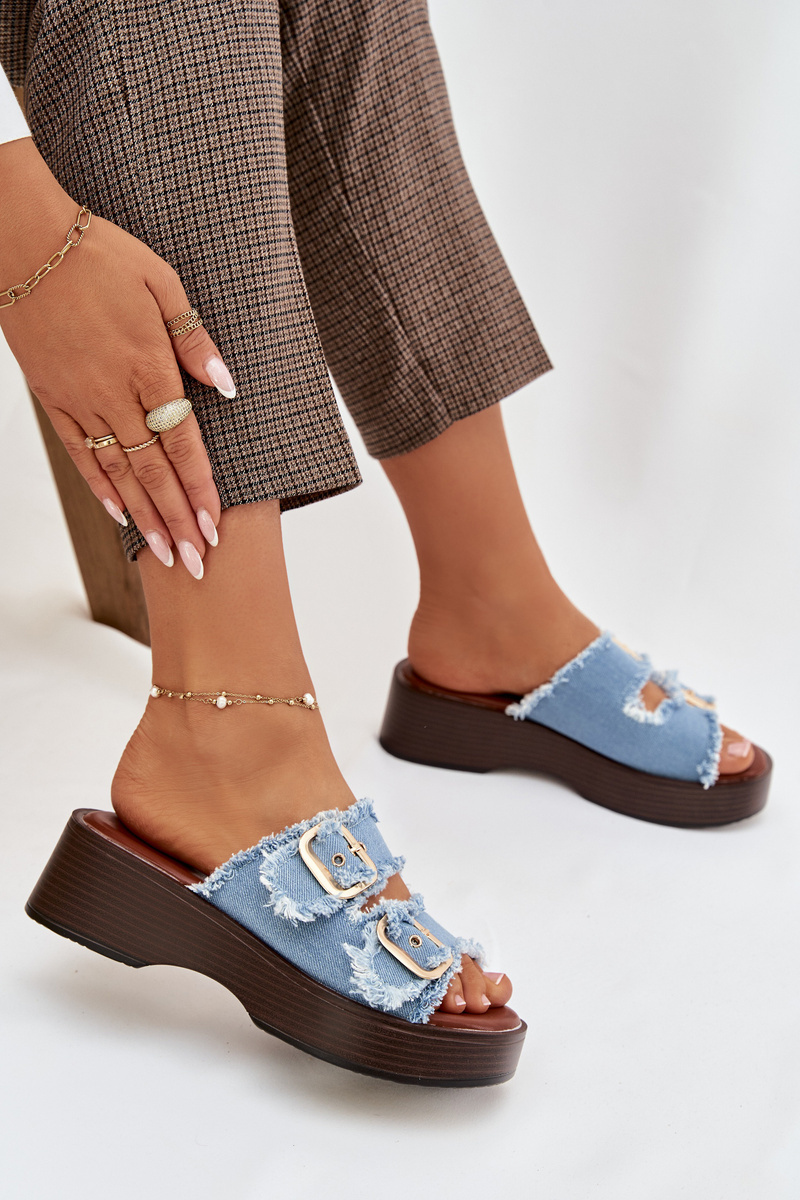 Modré pantofle se zlatými přezkami krásně doplní outfit v bílých, béžových nebo džínových tónech a dodají mu svěží letní vzhled.