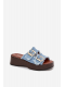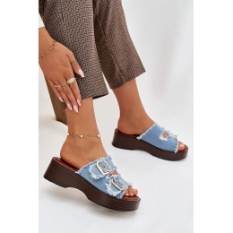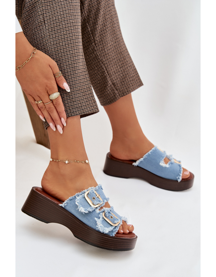 Dámské pantofle Renelisse v modrém provedení na platformě zaujmou moderním designem se zlatými přezkami, které dodávají obuvi elegantní a výrazný akcent. Zvýšená podešev poskytuje pohodlný a stabilní došlap, zatímco modrá barva působí svěže a originálně. Pantofle jsou ideální volbou pro letní dny i městské outfity.