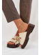 Dámské pantofle Renelisse ve světle béžovém provedení na platformě zaujmou elegantním designem se zlatými přezkami, které dodávají obuvi luxusní a moderní vzhled. Zvýšená podešev poskytuje pohodlný a stabilní došlap, zatímco neutrální barevný tón umožňuje snadné kombinování s letními i městskými outfity.