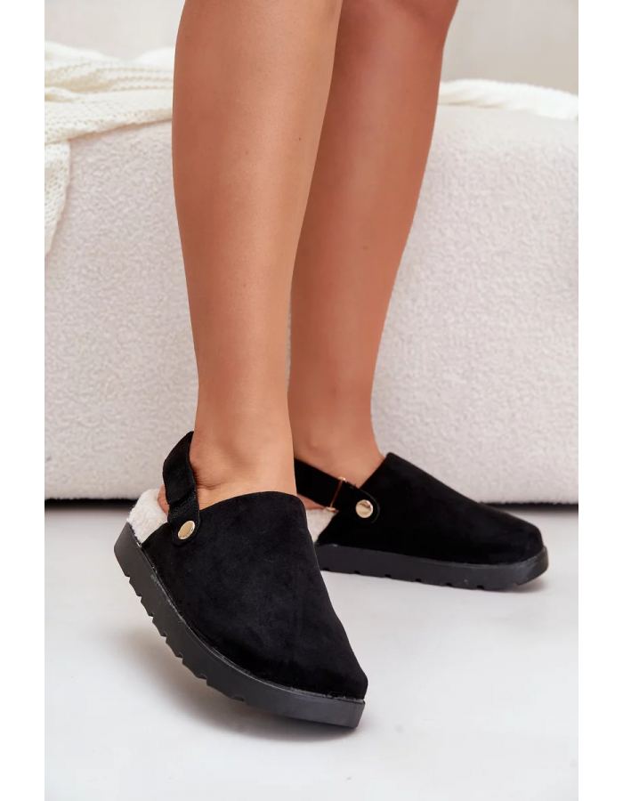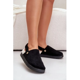 Dámské Pantofle Na Platformě Zateplené Kožíškem Typu Beránek Černé Sanilora 38