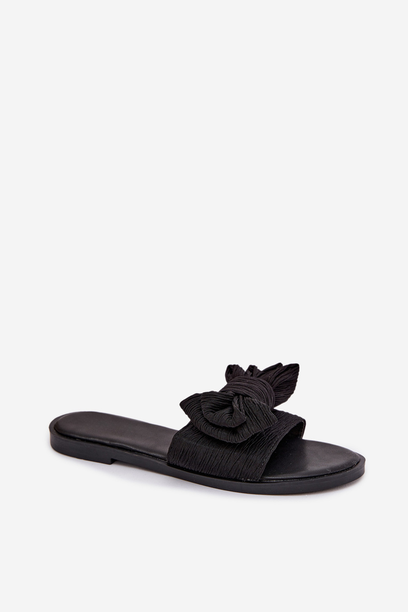 Černé pantofle s mašlí krásně doplní jednoduché šaty, sukně i kalhoty a vytvoří elegantní, ale nenucený letní look.