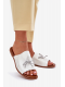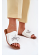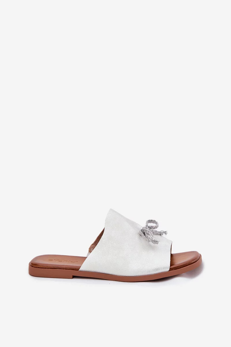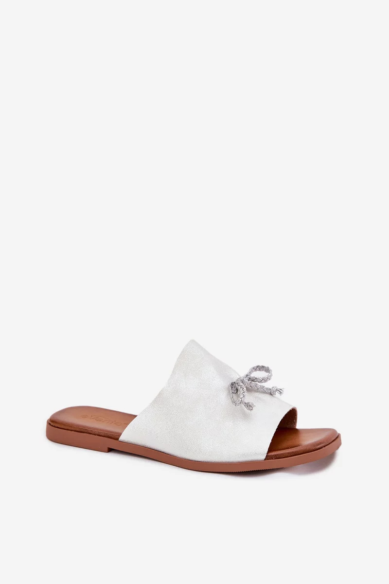 Dámské pantofle Norela ve stříbrném provedení zaujmou moderním a elegantním designem s ozdobným vázáním, které dodává obuvi originální a stylový vzhled. Plochý podpatek zajišťuje pohodlné nošení po celý den, zatímco metalický stříbrný odstín působí výrazně, ale zároveň vkusně. Tento model je ideální volbou pro ženy, které chtějí oživit letní outfit decentním leskem.