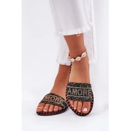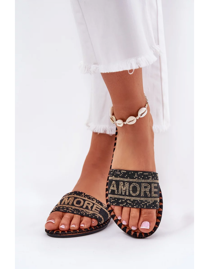 Černé pantofle se zdobením krásně doplní jednoduchý outfit a dodají mu elegantní nádech.