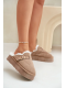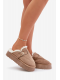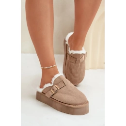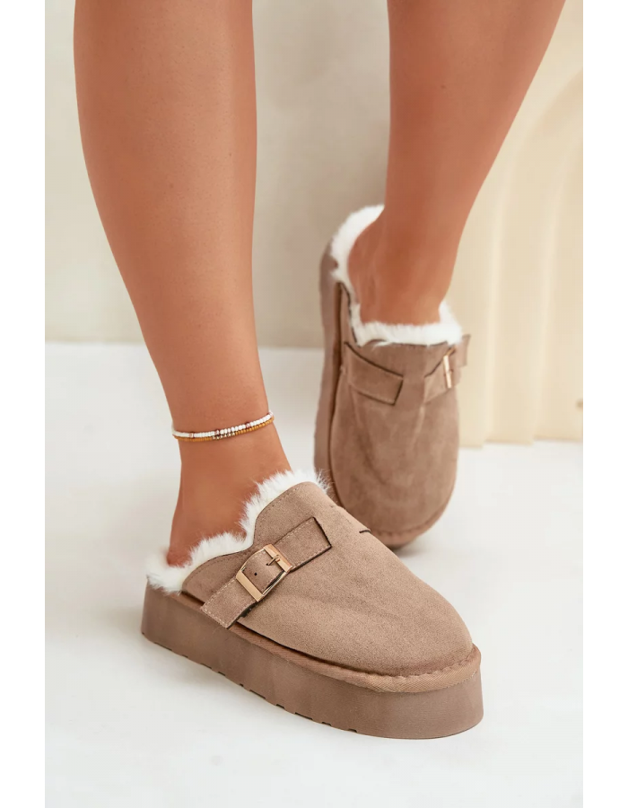 Dámské Pantofle Na Silné Podešvi S Kožešinou A Přezkou Tmavě Béžové Linneola 41