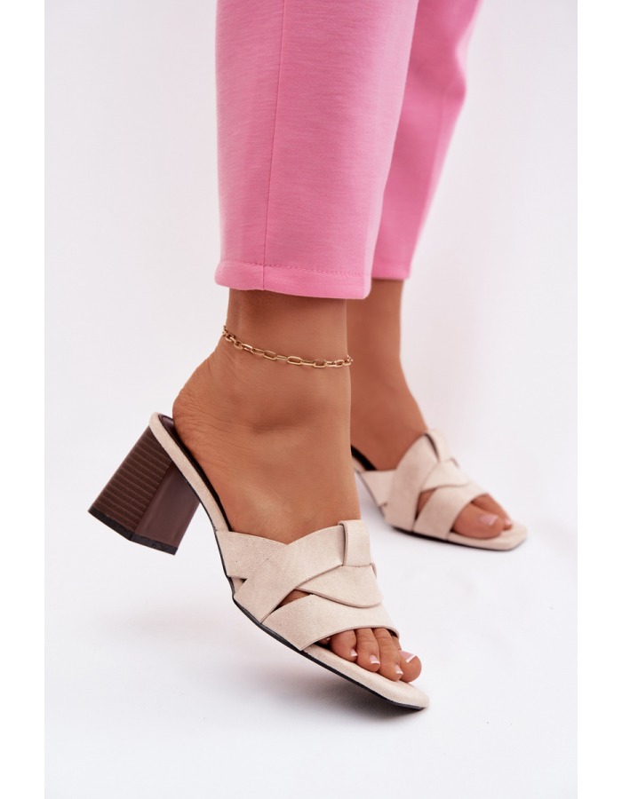 Béžové pantofle na sloupku skvěle doplní letní šaty, sukně i elegantní kalhoty v přírodních a světlých tónech.