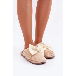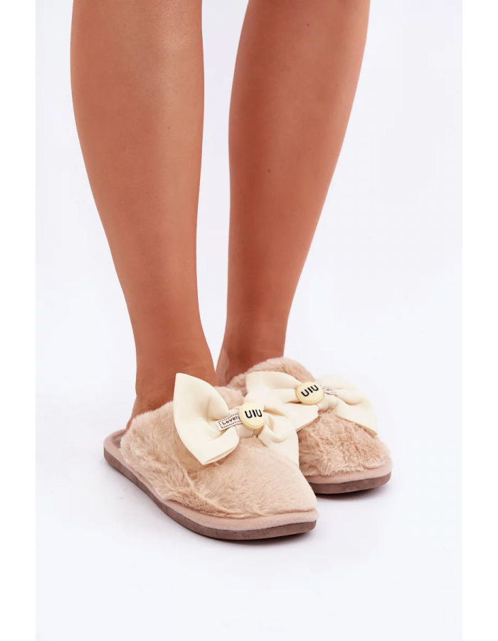 Dámské Pantofle S Kožešinou A Mašlí Béžové Olfedi 38/39