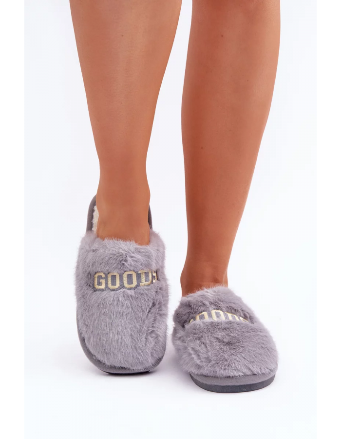Dámské Pantofle S Kožešinou A Nápisem Šedé Kalelia 39