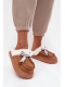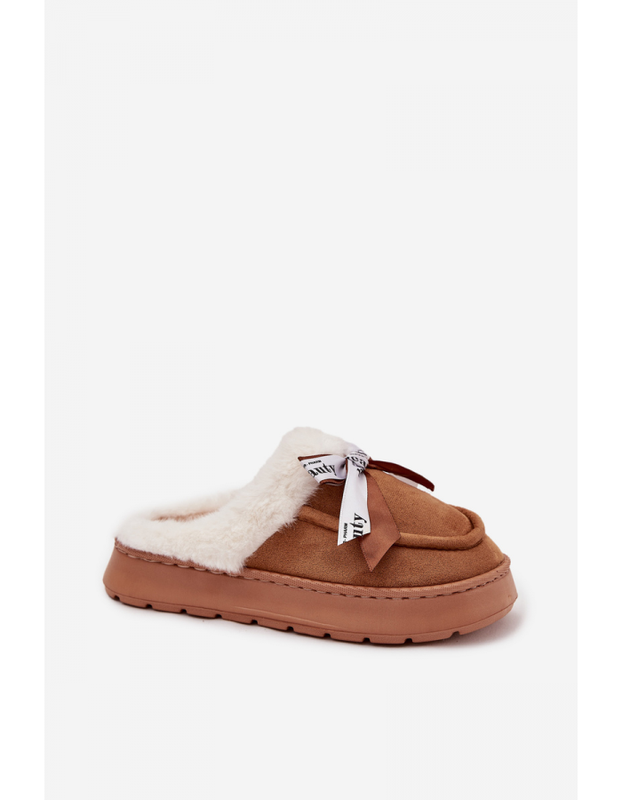 Vnitřní zateplení hebkým kožíškem obepíná nohy teplem, díky čemuž jsou ideální pro chladnější dny. Roztomilá mašle s nápisy umístěná vpředu dodává pantoflím dívčí půvab a odlišuje je od klasických modelů.