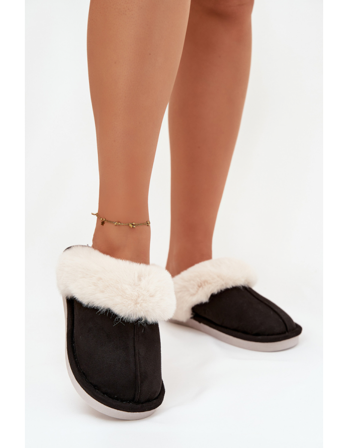 Černé dámské pantofle Zanelia s měkkým kožíškem jsou ideální volbou pro pohodlné domácí nošení. Huňatý vnitřní materiál zajišťuje teplo a komfort po celý den, zatímco elegantní jednoduchý design se snadno kombinuje s domácím oblečením. Pantofle poskytují pohodlí i během chladnějších dní a dodají nohám pocit hřejivého komfortu.