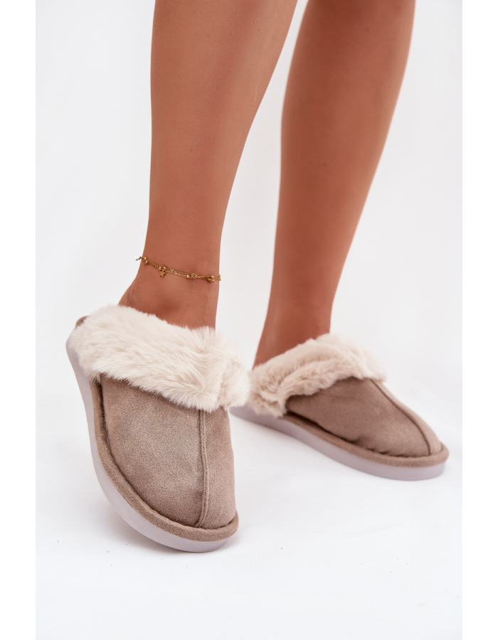 Khaki dámské pantofle Carisse s měkkým kožíškem poskytují pohodlí a teplo pro domácí nošení. Huňatý vnitřní materiál zajišťuje příjemný pocit při každém kroku, zatímco elegantní jednoduchý design se snadno kombinuje s domácím outfitem. Pantofle jsou lehké a pohodlné, ideální pro chladné dny.