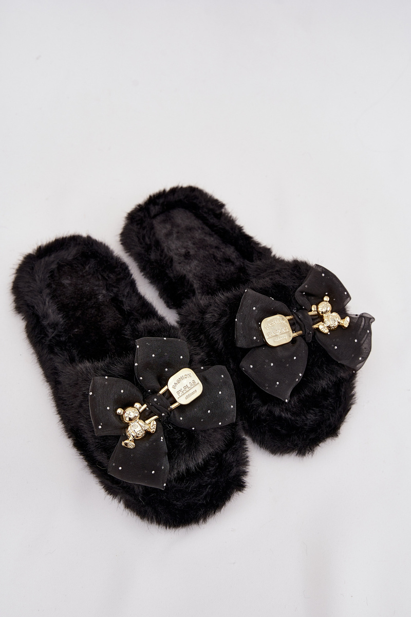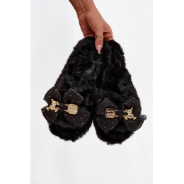 Vrchní část je ozdobena roztomilou mašlí s elegantní zlatou dekorací, což dodává pantoflím výjimečný a módní charakter. Vnitřek pantoflí je zateplený, takže nohy zůstávají příjemně v teple.