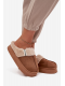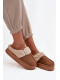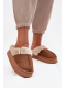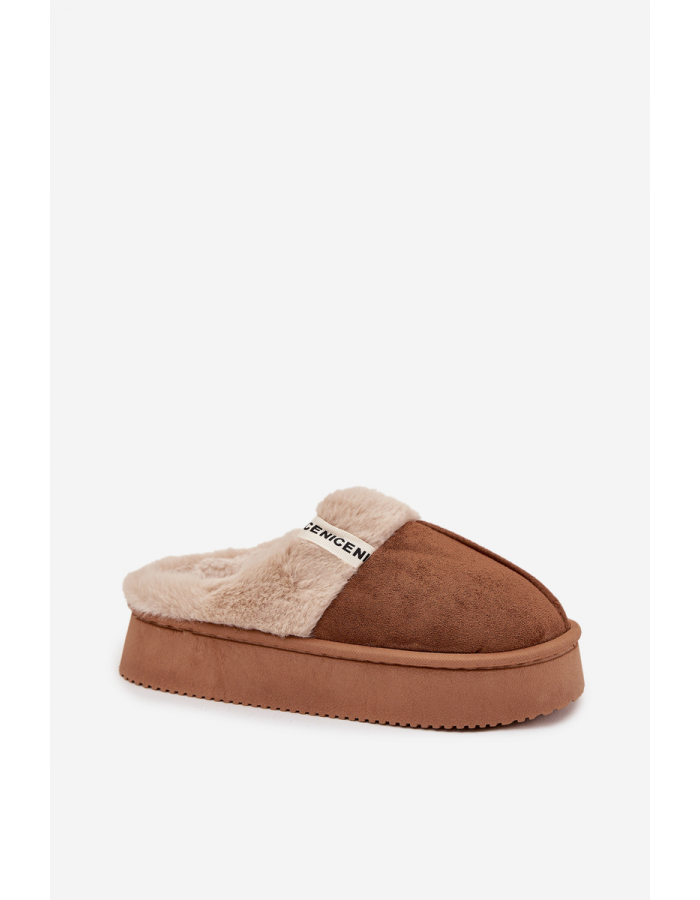 Vrchní část je ozdobena příjemným kožíškem a stylovým páskem s nápisem, což dodává pantoflím módní a útulný charakter. Vnitřek pantoflí je zateplený, díky čemuž účinně chrání nohy před chladem.