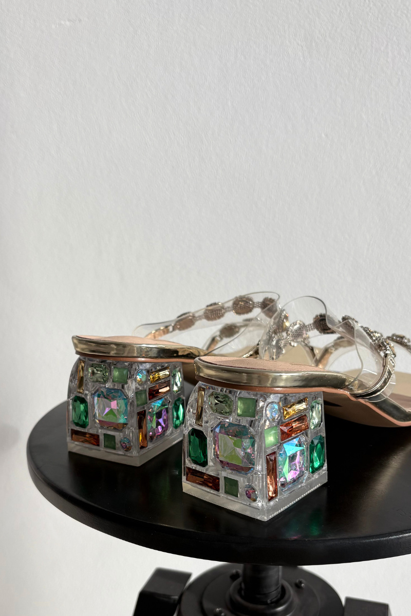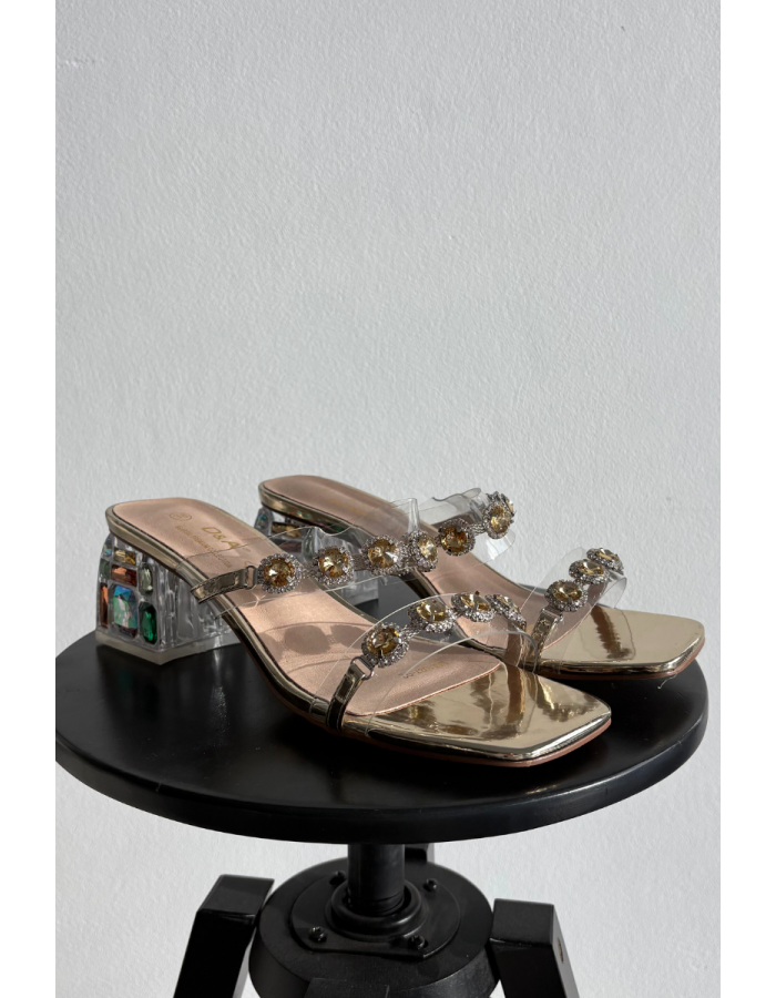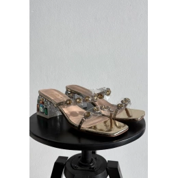 Zlaté pantofle s krystalkami krásně doplní minimalistické outfity — například bílé šaty nebo černé kalhoty s elegantní halenkou.