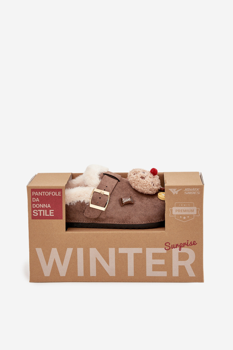 Hnědé dámské pantofle Thalora s elegantní sponou a dekorativními detaily jsou stylovou a zároveň velmi pohodlnou domácí obuví. Vnitřek je zateplený měkkým kožíškem, který poskytuje hřejivý komfort i v chladnějších dnech. Kvalitní provedení a pevná podrážka zajišťují pohodlný krok při každodenním nošení doma.