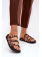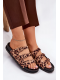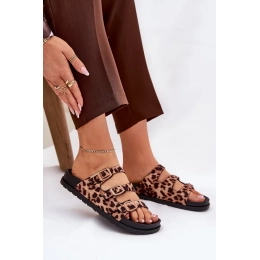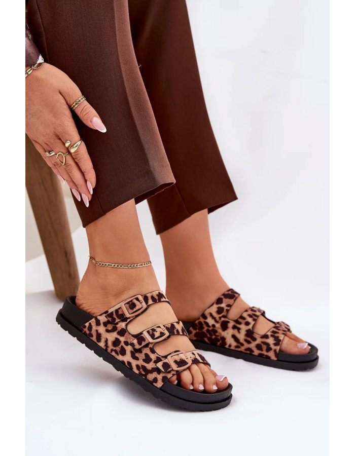 Dámské pantofle Uliri v hnědém provedení s panterkovým vzorem zaujmou výrazným a módním designem. Pásky s přezkami umožňují přizpůsobení noze a zajišťují pohodlné nošení, zatímco zvířecí motiv dodává obuvi originalitu a stylový akcent. Ideální volba pro ženy, které chtějí oživit letní outfit nepřehlédnutelným detailem.