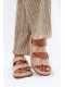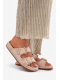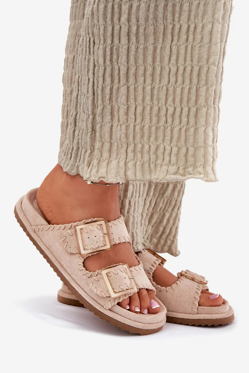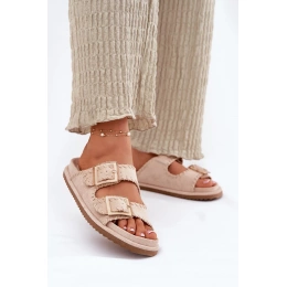 Béžové pantofle s ozdobným lemem krásně doplní outfit v přírodních a světlých tónech a podtrhnou jemný letní styl.