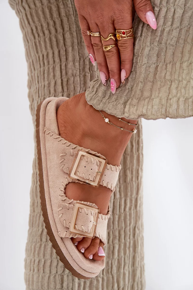 Dámské pantofle Visley v béžovém provedení zaujmou elegantním designem s přezkami doplněnými o ozdobné obšití, které dodává obuvi jemný a propracovaný vzhled. Pohodlný střih zajišťuje komfort při každodenním nošení, zatímco neutrální béžová barva působí nadčasově a snadno se kombinuje s letními i městskými outfity.