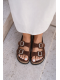 Čokoládové pantofle s přezkami skvěle doplní neutrální outfity – zkombinujte je s béžovými, krémovými nebo denim doplňky pro příjemně harmonický look.