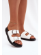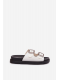 Bílé pantofle s přezkami vypadají skvěle s neutrálními outfity — zkombinujte je například s béžovými, pastelovými nebo denim kousky pro svěží letní styl.
