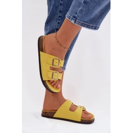 Dámské pantofle Oliena ve žlutém provedení představují svěží a výraznou obuv pro teplé dny. Design s přezkami dodává modelu moderní a stylový vzhled, zatímco otevřený střih zajišťuje pohodlí a vzdušnost při nošení. Žlutá barva působí optimisticky a energicky a stává se výrazným akcentem letních outfitů.