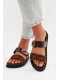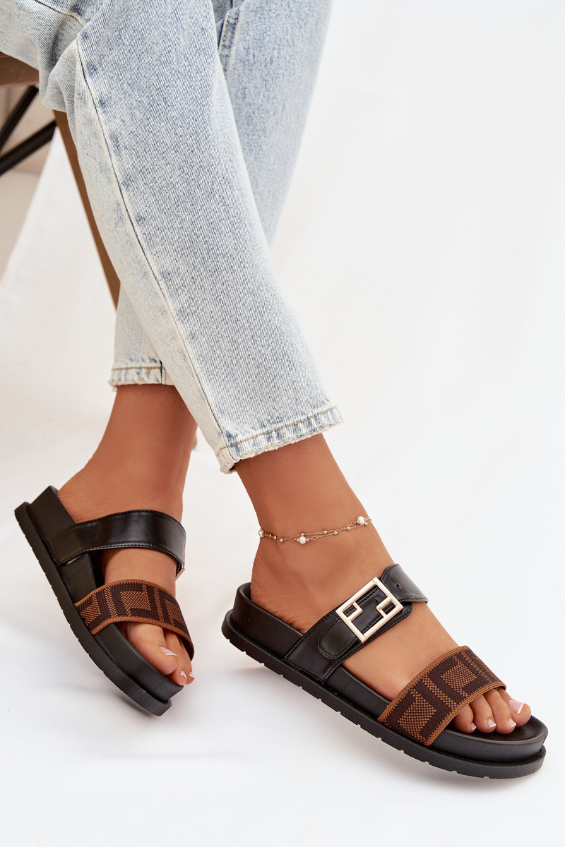 Dámské pantofle Fiorisse v elegantní černé barvě spojují pohodlí s nadčasovým a stylovým designem. Model je doplněn zlatou přezkou, která funguje jako módní akcent a dodává obuvi luxusní vzhled i bez přehnané zdobnosti. Plochá podešev zajišťuje stabilní a komfortní došlap, takže jsou tyto pantofle ideální pro každodenní nošení i běžné volnočasové outfitů.