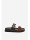 Černé pantofle se zlatou přezkou krásně doplní outfity s neutrálními i výraznými barvami — zkombinujte je s béžovými kalhotami, džínami nebo jednoduchými šaty pro sofistikovaný look.