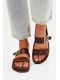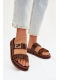 Dámské pantofle Fiorisse v teplém hnědém (brązowe) provedení spojují pohodlí s elegantním a nadčasovým designem. Nízká, plochá podrážka poskytuje stabilní a komfortní došlap, zatímco zlatá přezka na nártu dodává obuvi módní a luxusní akcent. Hnědá barva působí přirozeně a univerzálně, takže tyto pantofle snadno sladíte s různými outfity – od casual až po elegantní.