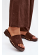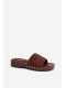 Dámské pantofle Ferinna v čokoládovém provedení zaujmou elegantním designem se zlatými cvočky, které dodávají obuvi výrazný a luxusní charakter. Tmavě hnědý, čokoládový odstín působí nadčasově a vkusně, zatímco pohodlný střih zajišťuje komfort při každodenním nošení. Ideální volba pro stylové letní outfity.