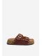 Hnědé pantofle se zlatými detaily skvěle doplní outfit v béžových, krémových nebo bílých tónech a dodají mu elegantní akcent.
