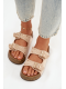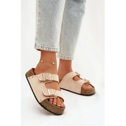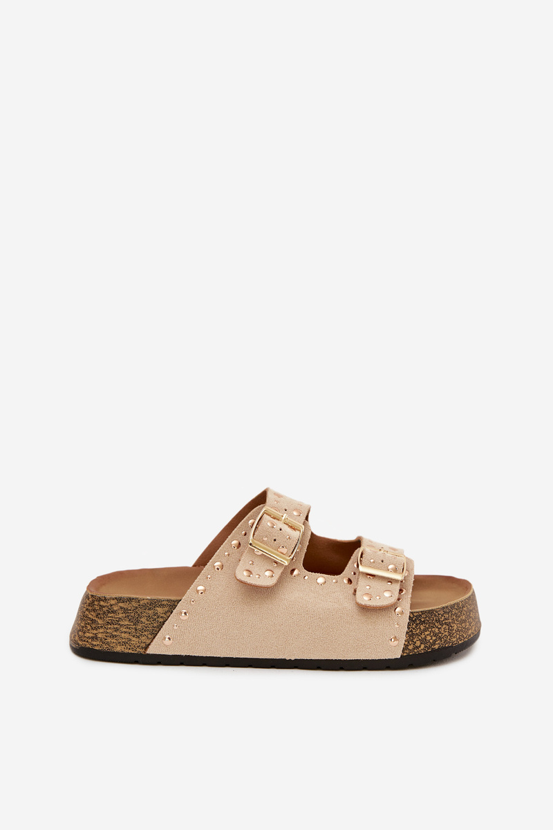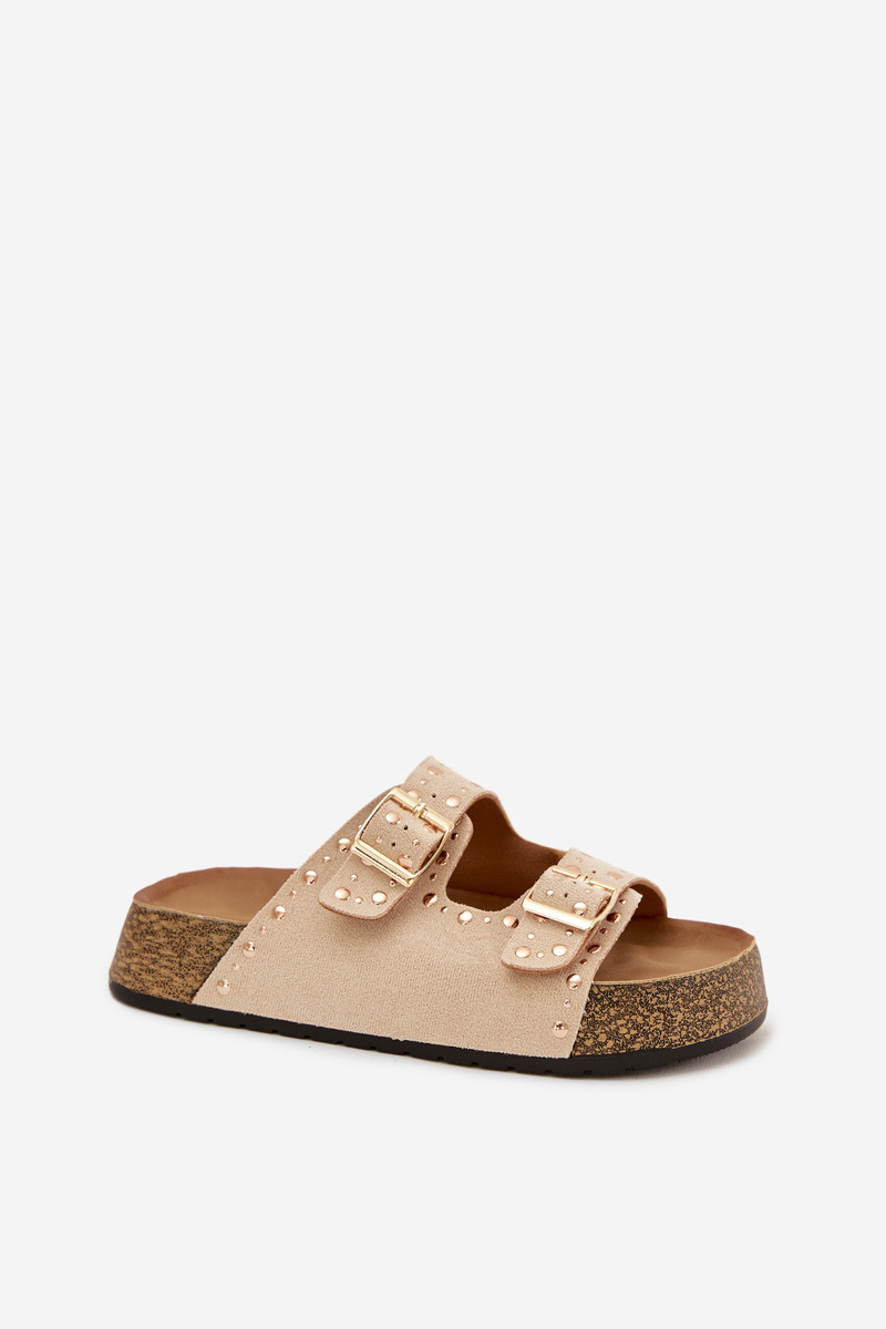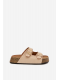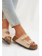Dámské pantofle Tervina ve světle béžovém provedení zaujmou kombinací zlatých přezek a dekorativních cvočků, které dodávají obuvi výrazný a moderní charakter. Pohodlný střih zajišťuje komfort při každodenním nošení, zatímco světlý neutrální odstín působí jemně a nadčasově a snadno se kombinuje s letními i městskými outfity.