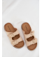 Světle béžové pantofle se zlatými detaily skvěle doplní outfit v bílých, krémových nebo pastelových tónech a dodají mu elegantní akcent.