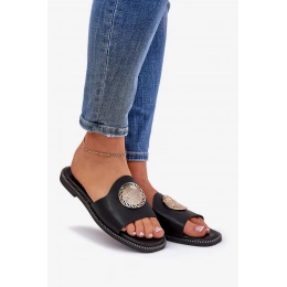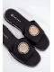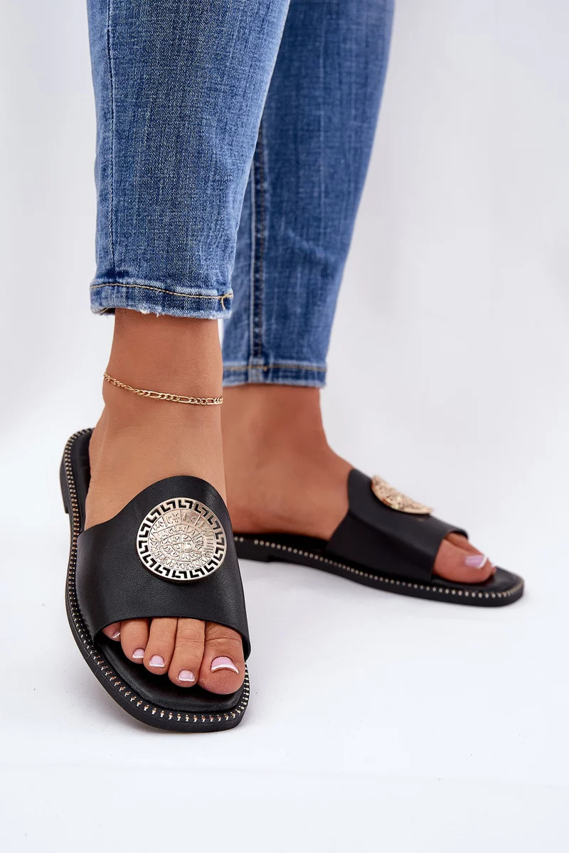Dámské pantofle Tatereia v černém provedení představují praktickou a stylovou letní obuv z eko kůže. Jednoduchý střih je doplněn o dekorativní prvek, který dodává modelu elegantní vzhled. Plochý podpatek zajišťuje pohodlné nošení po celý den, zatímco nadčasová černá barva umožňuje snadné kombinování s různými outfity.