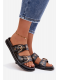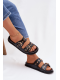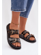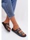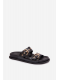 Černé pantofle se zlatými přezkami krásně doplní jednoduché letní outfity, šaty i kalhoty a podtrhnou elegantní vzhled.