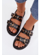 Dámské pantofle Bellarya v černém provedení zaujmou elegantním designem se zlatými přezkami, které dodávají obuvi výrazný a stylový akcent. Svršek z eko kůže působí moderně a snadno se udržuje, zatímco otevřený střih zajišťuje pohodlí během teplejších dnů. Nadčasová černá barva umožňuje snadné kombinování s městskými i letními outfity.