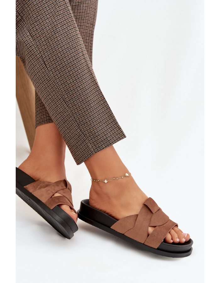 Hnědé pantofle z eko semiše krásně doplní outfit v béžových, krémových nebo bílých tónech a podtrhnou přirozený letní styl.