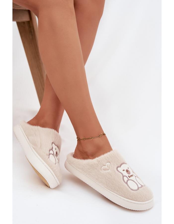 Béžové dámské papuče Noralie s hřejivým kožíškem a roztomilým motivem medvídka přinášejí maximální pohodlí a hravý design. Měkký materiál vás krásně zahřeje a lehká konstrukce poskytne příjemný komfort při každém kroku.