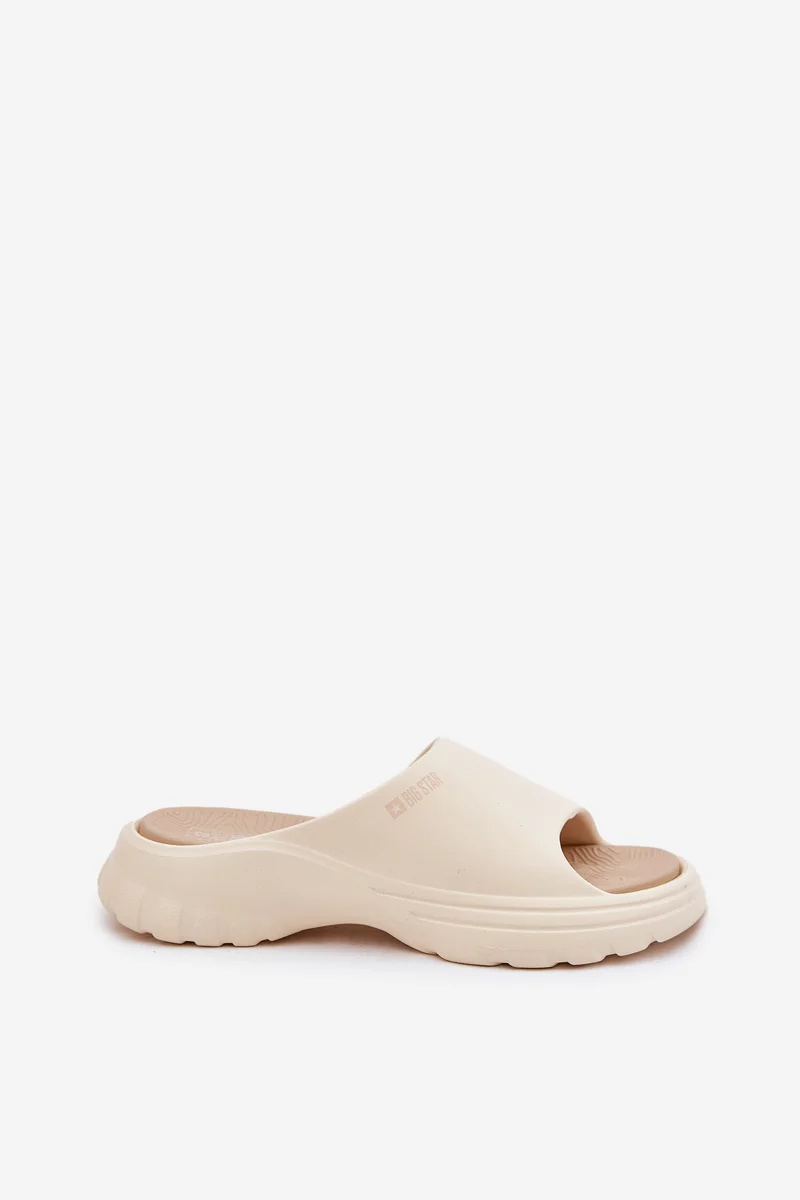 Stylové a mimořádně pohodlné dámské pantofle Big Star v nadčasové béžové barvě jsou ideální volbou pro letní sezónu. Jejich minimalistický design se širokým páskem přes nárt nabízí jednoduchost, která skvěle doplní jakýkoliv volnočasový outfit.