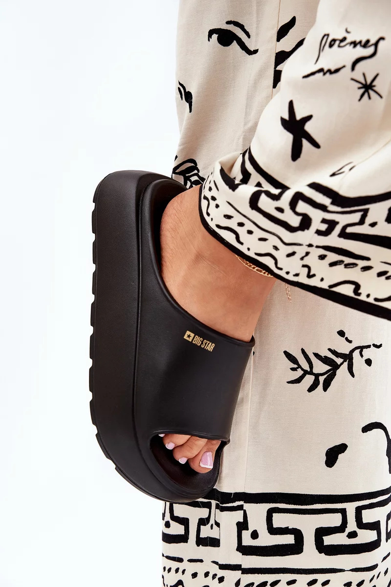 Stylové a maximálně pohodlné pantofle od značky Big Star, vyrobené z lehké a měkké pěny EVA. Platformová podrážka dodává nejen moderní vzhled, ale také zajišťuje komfortní nošení po celý den. Černý design je nadčasový a snadno se kombinuje s jakýmkoliv outfitem.