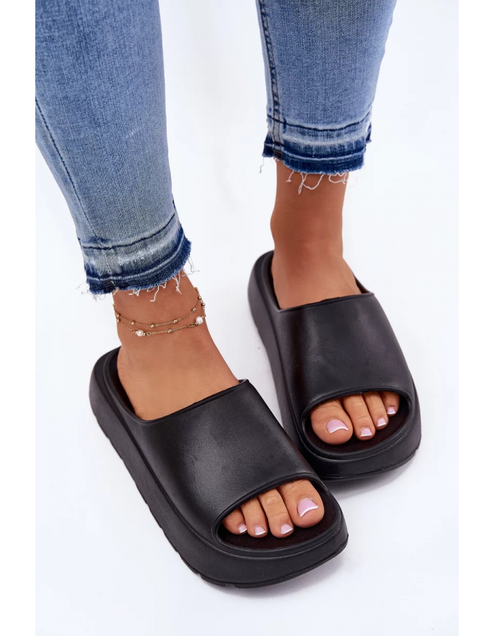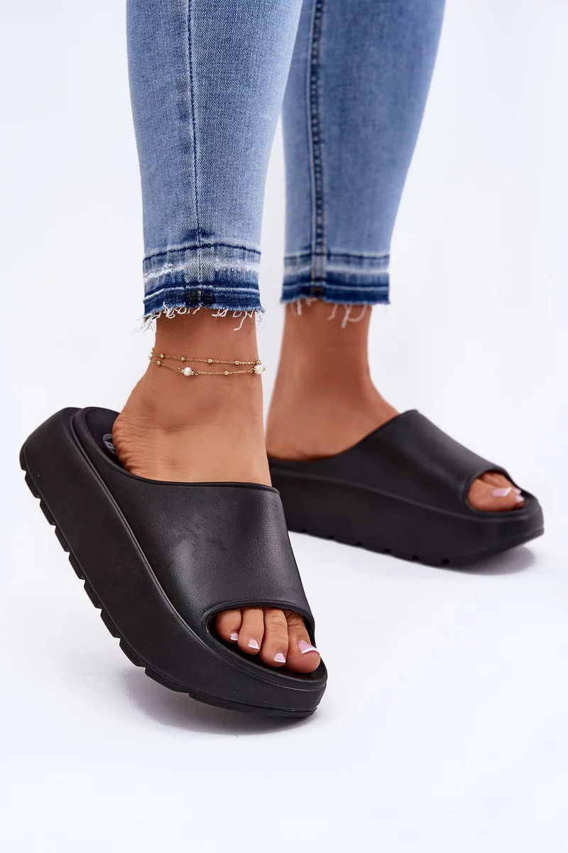 Černá varianta je skvělá volba, pokud chcete univerzální pantofle na platformě, které se hodí ke každému outfitu.