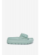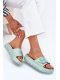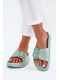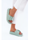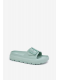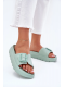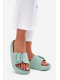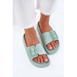 Dámské pantofle z lehkého pěnového materiálu na platformě jsou navrženy pro pohodlné každodenní nošení. Praktická přezka umožňuje snadné přizpůsobení šířky nártu, díky čemuž pantofle lépe sedí na noze. Zelené provedení dodává svěží vzhled a oživí letní i domácí outfit.