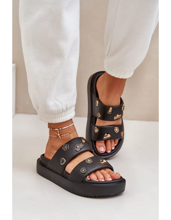 Dámské pantofle z lehkého pěnového materiálu jsou ideální pro pohodlné každodenní nošení. Měkký došlap tlumí chůzi a jednoduchý střih umožňuje snadné nazouvání. Ozdobné připínky dodávají pantoflím zajímavý detail a černé provedení zajišťuje nadčasový, praktický vzhled.