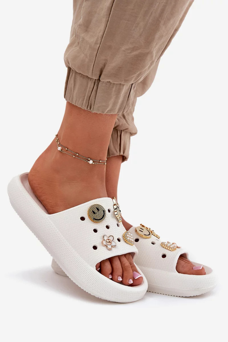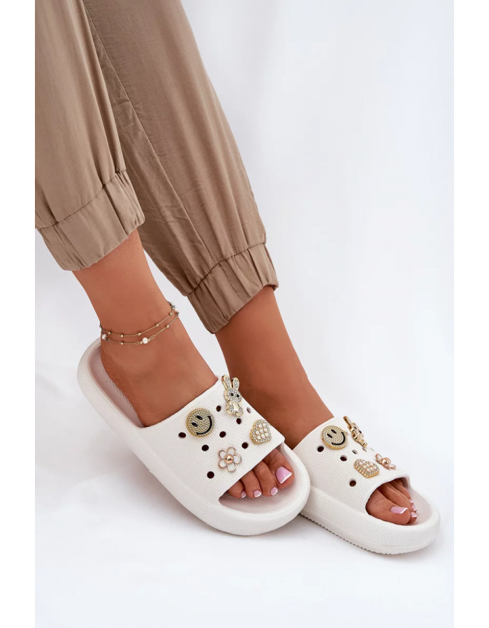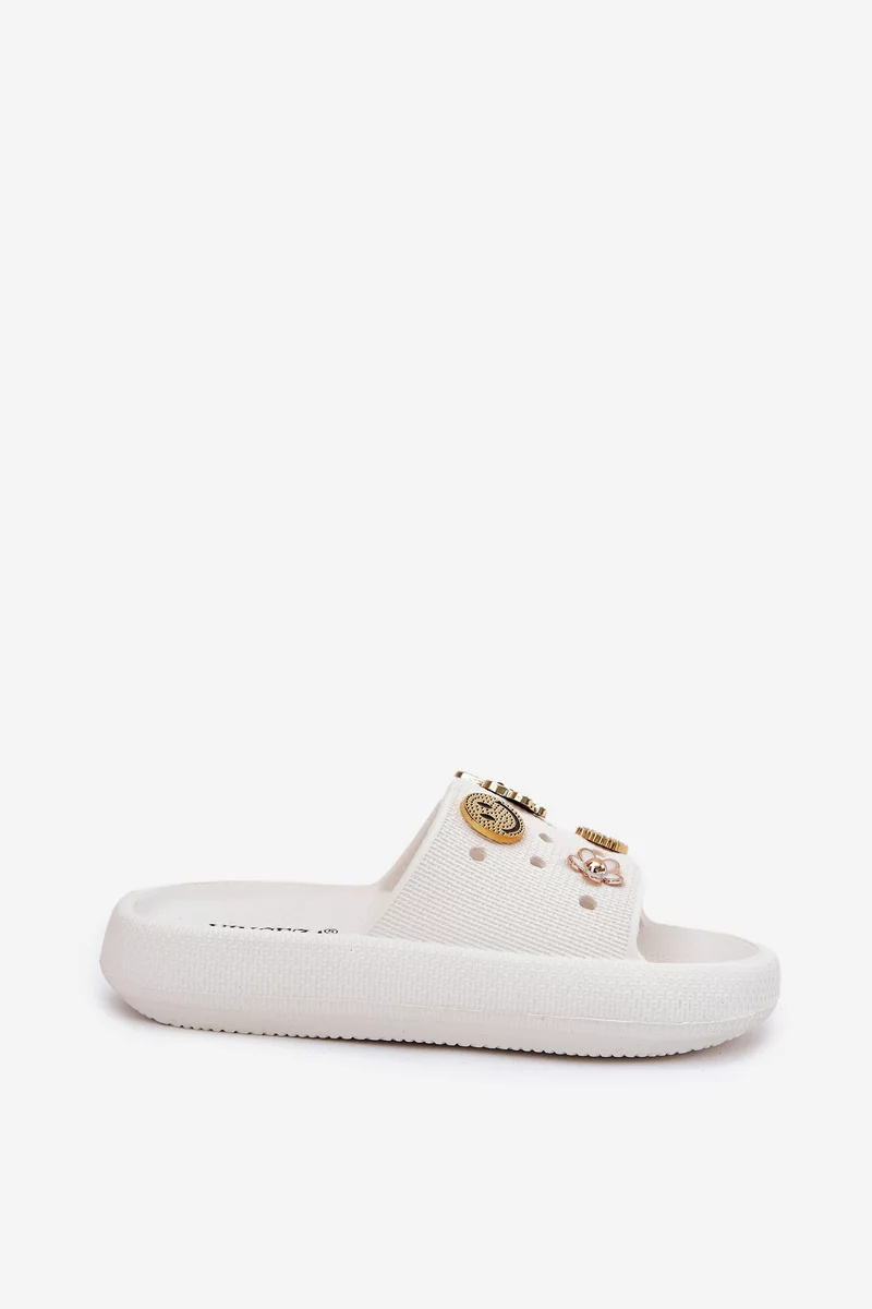 Dámské pantofle Vinceza 76055 jsou vyrobené z lehkého pěnového materiálu, který zajišťuje pohodlí při každodenním nošení. Ozdobné připínky dodávají pantoflím originální a jemně výrazný vzhled, zatímco jednoduchý střih umožňuje snadné nazouvání. Bílé provedení působí svěže a elegantně, ideální pro letní dny.